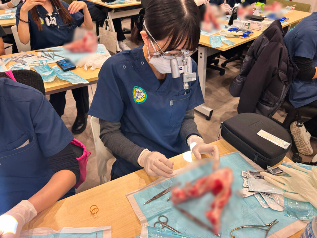 今回の勉強会では、豚顎を用いた歯周外科のハンズオン実習を実施いたしました。